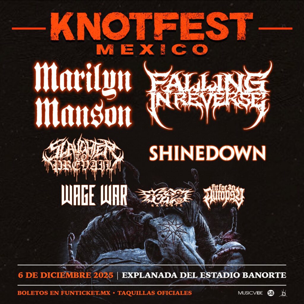 Por otro lado tenemos a Falling in Reverse, encabezados por el polémico Ronnie Radke. Con sus riffs agresivos, letras rapeadas a velocidades inhumanas y gritos desgarradores, la banda de Las Vegas se ha posicionado como una de las más grandes agrupaciones del metal moderno. Entre sus canciones más populares destacan Popular Monster, Watch The World Burn, The Drug In Me Is You y I’m Not A Vampire, además de una colaboración con Manson titulada God Is A Weapon. ¿Será que la toquen juntos en el KnotFest México 2025?